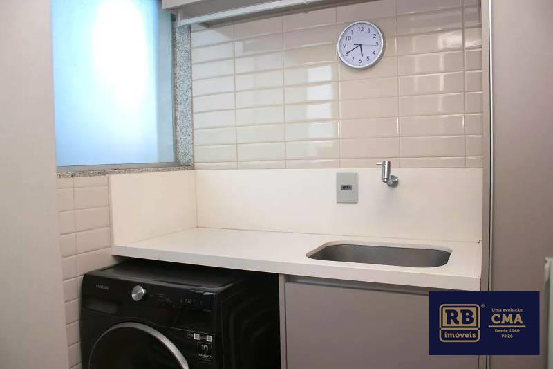 Área de serviço com tanque e armários planejados.